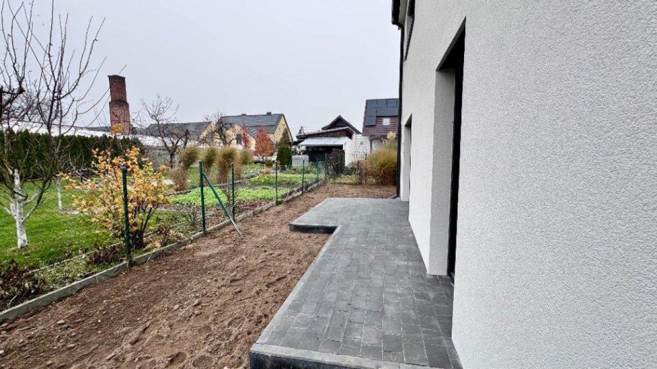 • Wykostkowany taras i wybrukowany podjazd z miejscem parkingowym