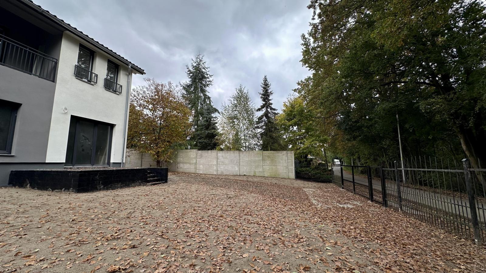 • Ogrodzenie: Estetyczne ogrodzenie wyznaczające granice działki, zapewniające prywatność.
